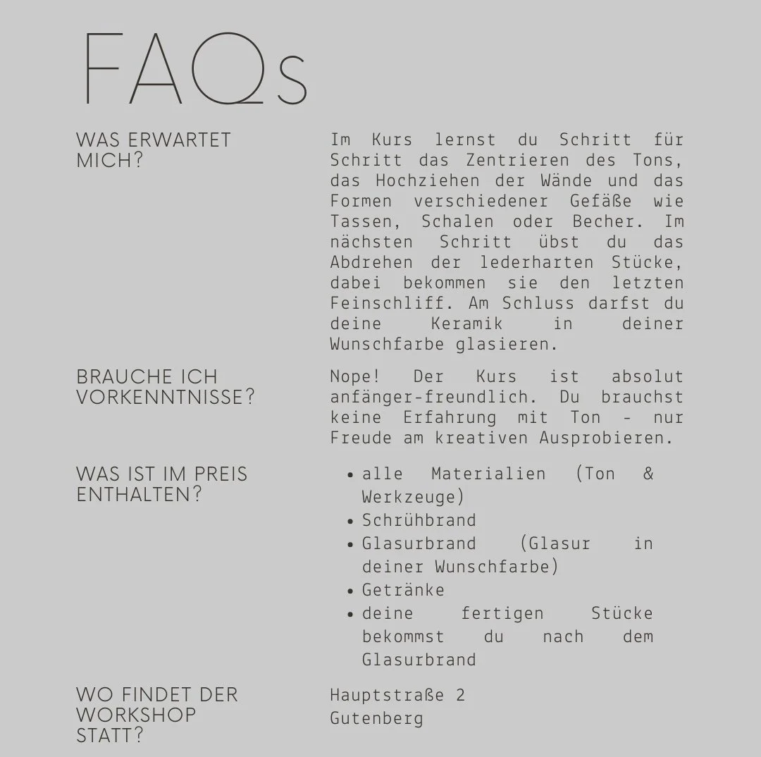 Shop the collection Categories: Select a Category Keramik Workshops Keramik | Workshops | Töpferscheiben Kurs €250.00 Add To Cart Added! Kleine Etagère mit Glocke €40.00 Add To Cart Added! Dose mit Deckel €30.00 Add To Cart Added! Dose mit Deckel €30.00 Add To Cart Added! Schale Herz €33.00 Add To Cart Added! Sushi Set €19.00 Add To Cart Added! Handbuilding Workshop €70.00 Add To Cart Added! Kleine Etagere mit Glocke €40.00 Add To Cart Added! Sahne/Milch Kännchen €18.00 Add To Cart Added! Kaffee Becher €19.00 Add To Cart Added! Geschenkgutschein from €25.00 Select Value €25.00 €50.00 €75.00 €100.00 Purchase Added! Schale €20.00 Add To Cart Added! Have any questions? hello@potterybymi.com 015162971641